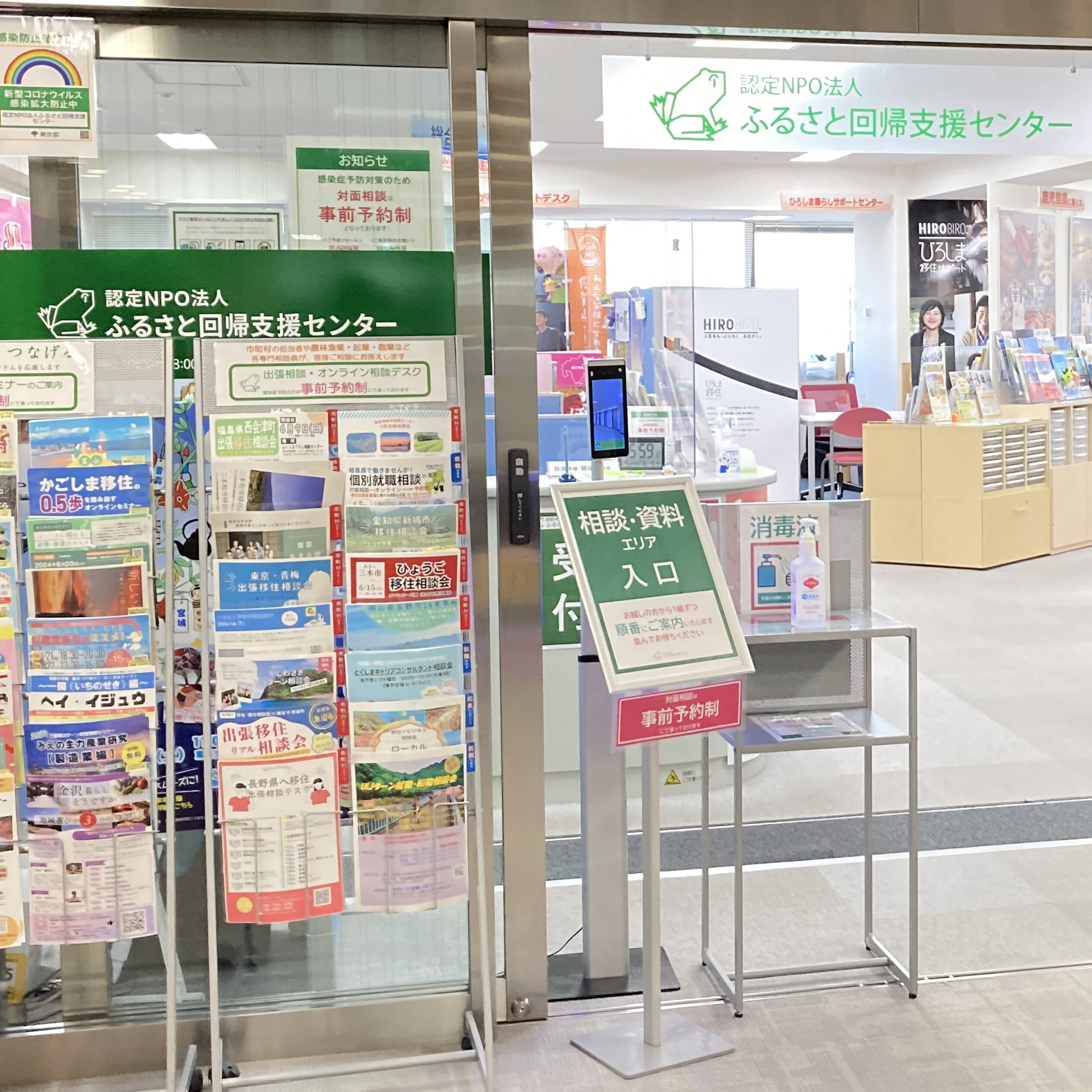 有楽町駅すぐの東京交通会館8階、東京駅からのアクセスが良い場所に位置しています。全国で最大規模の移住相談窓口として、幅広い相談を承る移住の玄関口となっています。